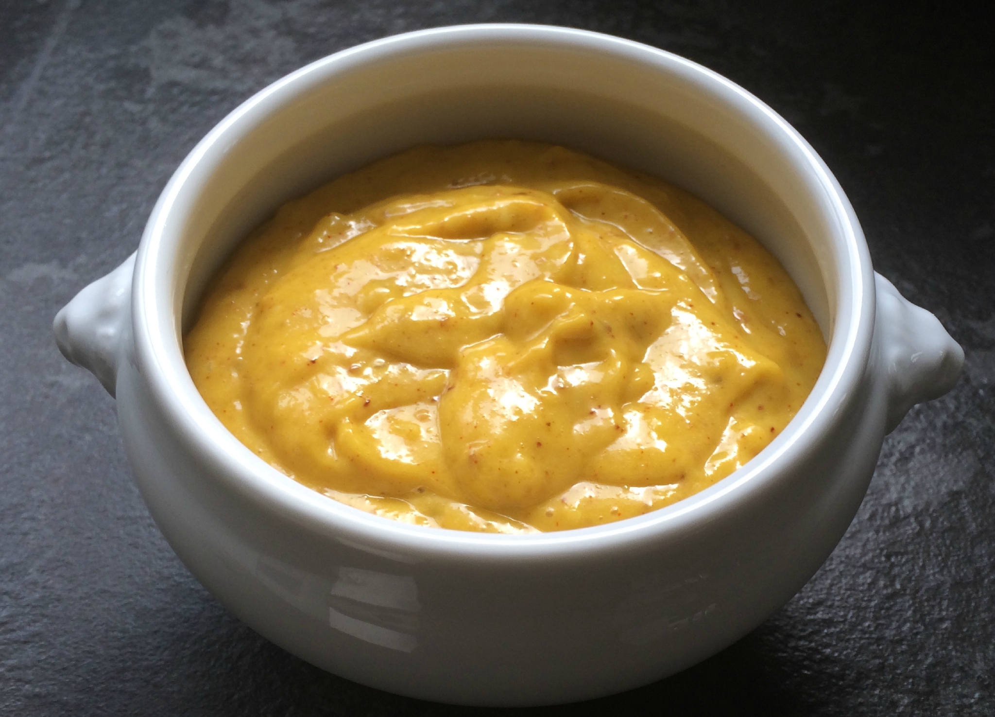 You need: one egg, 1 glass of sunflower oil, a inch of salt, a pinch of saffron, half teaspoon of garlic in powder, 1 teaspoon of mustard, 1 teaspoon of sweet chilly and half teaspoon of hot chilly. Put all the ingredients together and whip for 1 minute with an immersion electric whip. It’s ready.