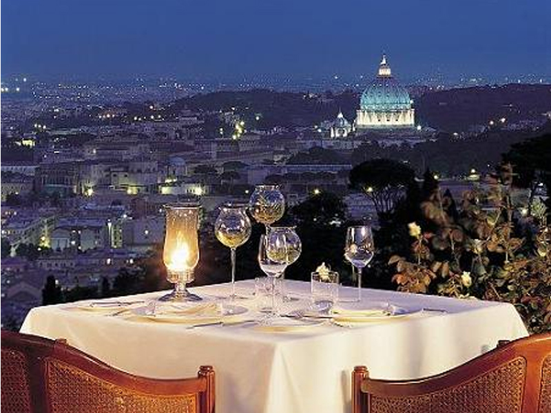 The restaurant is situated in the wonderful Rome Cavalieri Hotel, a Waldorf Astoria Resort.